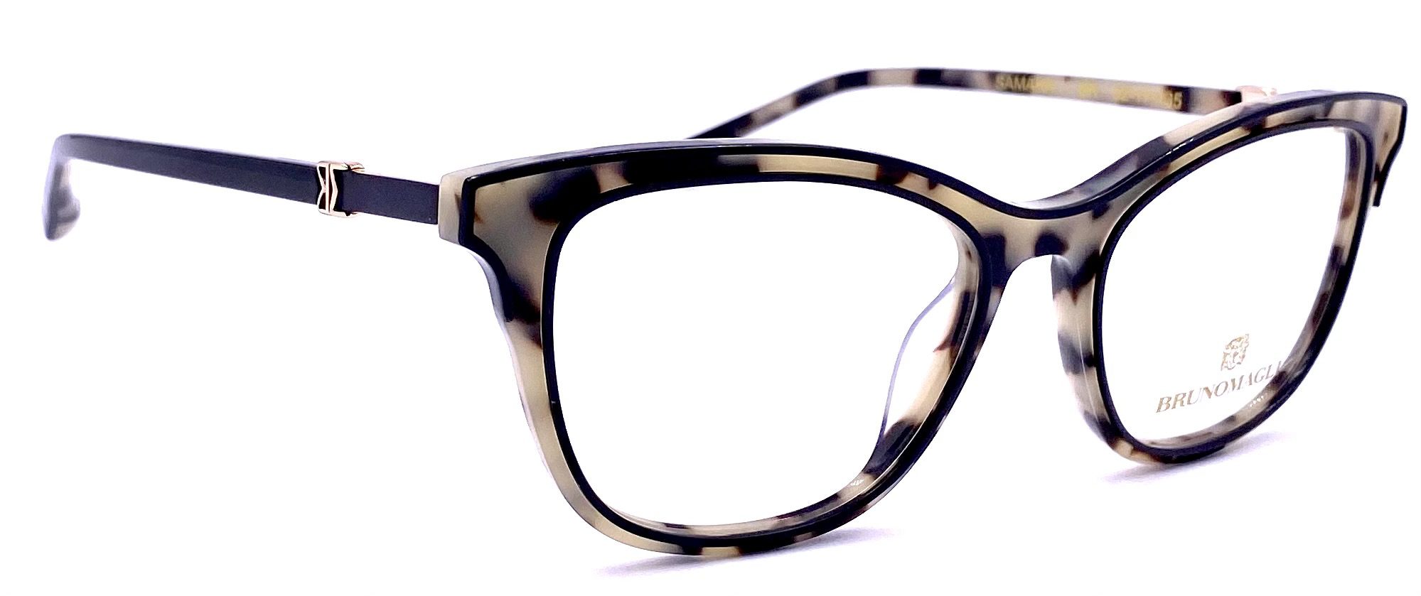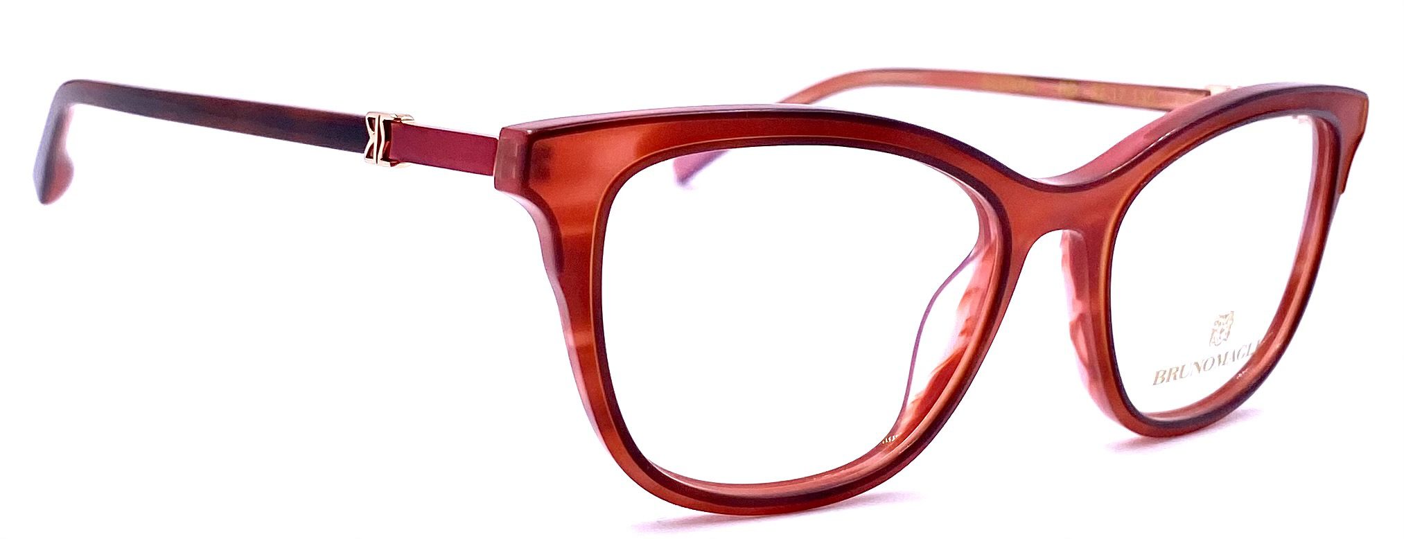 Metal Bruno Magli logo effortlessly molded into the frame